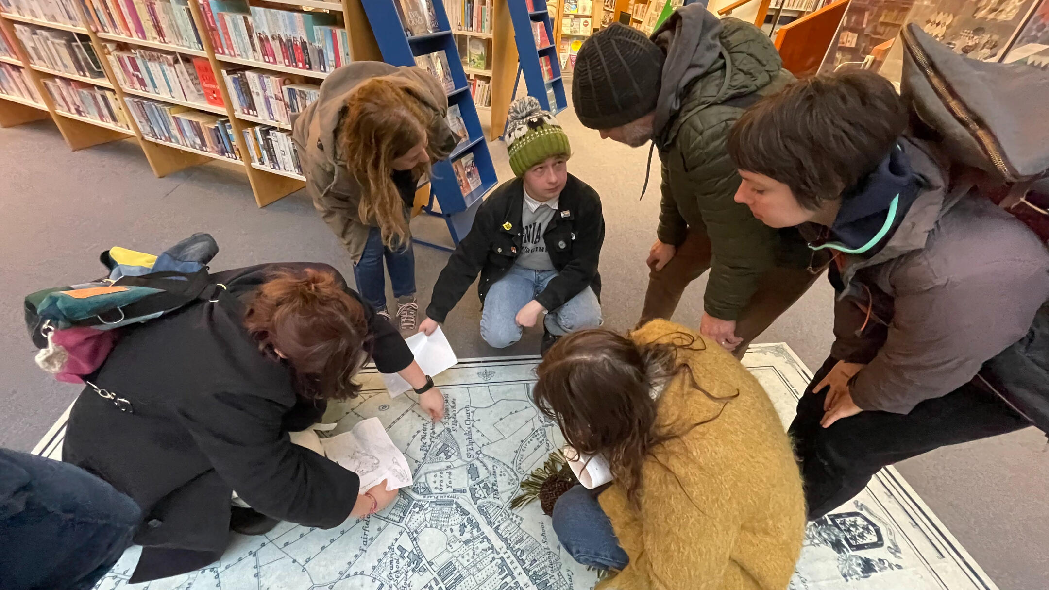 Before visiting the site the team read archaeology reports from several different periods to gain an understanding of the site.During the visit, these very smart people started to look at the old maps, contemporary aerial images, and began to piece together the history of the site.A a moment of genuine began to emerge as they discovered the outline of the old motte and bailey castle. This amazing moment crystallised our desire to share this with other people and would go on to form the basis of our walking tour the following Easter with children from the estate, with the help of the friends of St Elphin's group.